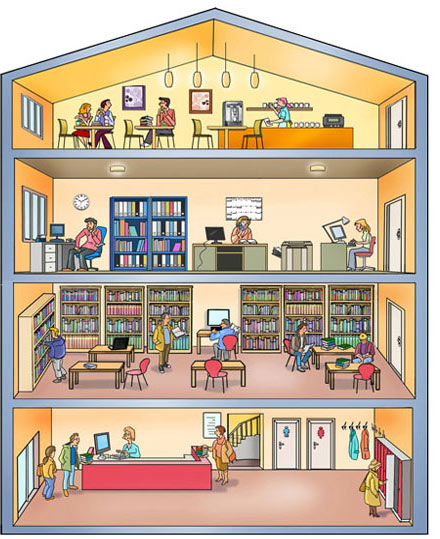 Querschnitt durch eine Bibliothek, Aus: Studio 21, Cornelsen Verlag